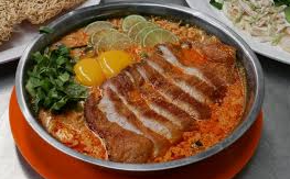 Makanan ini biasanya hanya disajikan dalam mangkuk dengan isian berupa sebuah ikan patin yang dimasak dengan kuah bening pedas. Bagi yang belum tau nih ikan patin itu hampir mirip lohh dengan ikan lele. Hanya saja kandungan yang dimilikinya berbeda. Terutama kandungan kolesterol dair ikan patin ini lebih rendah dan dagingnya pun lebih empuk.