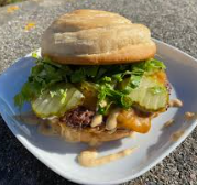 Kebab, yang biasanya berisi daging sapi atau ayam panggang dengan sayuran dan saus yogurt, diubah menjadi versi Thai dengan saus nam jim jaew (saus asam pedas khas Isan) dan isian tambahan seperti daun kemangi dan acar Thailand. Rasanya jadi lebih segar dan penuh kejutan.